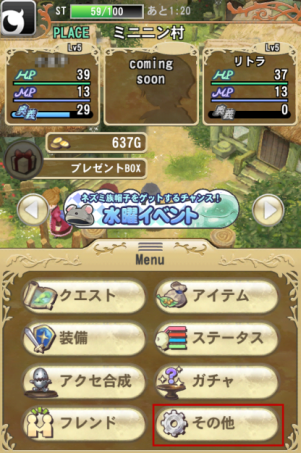 2. 当你完成新手教学后, 点击下面的「MENU」, 会开启下图的画面! 请点选「その他」的按钮。