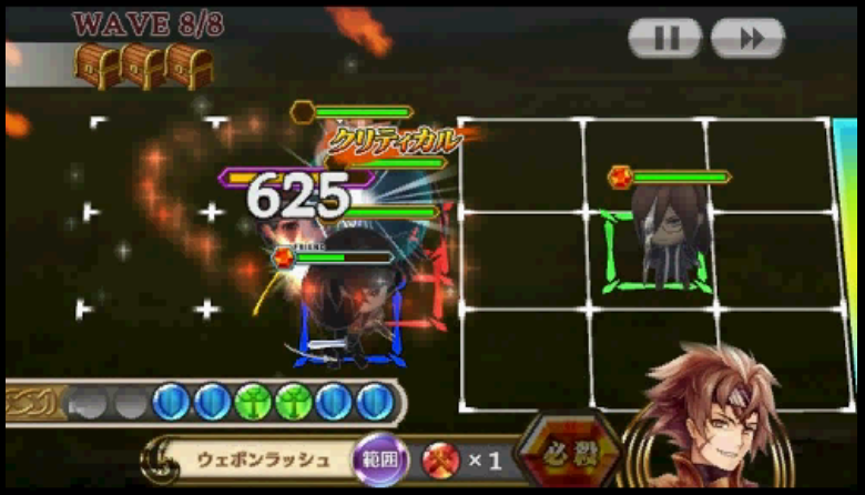 应付第6波的「女骑士」的方法跟第二关时一样。而Final Wave是「勇者」一人,他一击打800~1200伤害,而独有的範围大绝,伤害是我方全体扣约2千多(果然有一人对抗世界的大能‧‧‧‧‧‧)司祭在此关作用变得十分重要,她要负责承受「勇者」的普通攻击。当他想出大技时,便以武器商人或主角开必杀,中断施法。