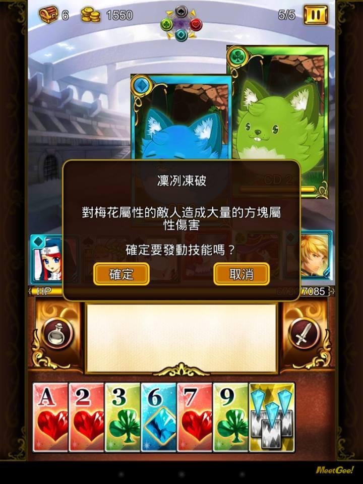 这种类型又称之为强袭队,队型的特色是输出高、回復力不错,但是HP偏低,遇到CD 1的怪,很容易被秒掉,因为HP不够高撑不住一个回合的攻击,导致回復力根本发挥不了作用,非常容易输掉。这个队型运气成份佔很大,如果在战斗当中,没有好的扑克牌,基本上就只能不断的花宝石復活了。