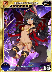 小狼女cos的小恶魔好萌有木有!(让我想起TVD的Hayley了),小狼女在台服的资料可谓可怕,变成了一张双围5w攻击力超3w的超强攻击卡!不过这也符合了国人对小狼女的爱有多深切~