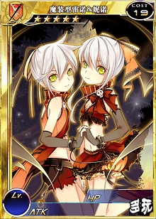 | 背景资料 | 一对来自魔族的双子,非常喜欢参与派对和庆典。比起前者,更喜欢对其他骑士搞恶作剧,凭借讨人欢心的外表,实在是让人生气不起来。 | |||