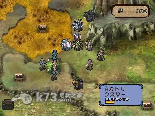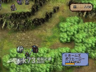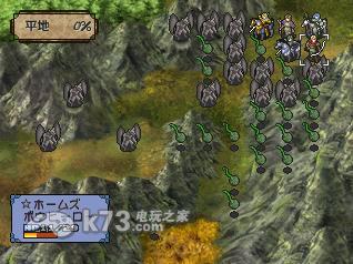 | 很让人头痛的一战。我军会遭到来自西面和南面连续不断的攻击,石像鬼高命中高必杀,眼球怪高攻击高攻速,而且这两种魔物都是飞行系,无孔不入,很难防备。这种情况下如出战同伴过多,无疑是自找没趣。所以我只用了6个人,除男女主角外,还有那隆、罗杰、梅尔和璞拉姆。一开始卡特莉向下方的宝箱处移动,第二次移动结束时变身,顺利的话第六回合时可以移动到距梅梅尔之主一格外进行攻击。大范围吐息的攻击力30,第七回合时再喷一次正好解决HP60的梅梅尔之主。任务完成后赶快向南面的树林移动,离开眼球怪们的攻击范围。如果不幸在此之前就变回了人形,那就只好拼RP了,只要能坚持一回合不死,下回合就能再次变身,那时就安全了。其实二队人人都带着护身符,只不过消耗在这种敌人手下很是浪费。我第一次攻略这章时用掉了一个护身符,因为才第八回合,就毫不犹豫地LOAD了,今时不同往日,我们二队已经不再是强盗军团了,赚钱不易,能节约还是要尽量节约。霍姆兹这边要站成这样