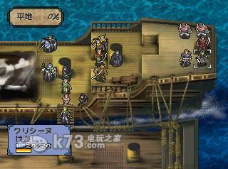 | 在不越过跳板的前提下将除前甲板外的海贼统统吸引过来干掉,上敌船攻击也是可以的,只要攻击后马上再移动回来就不会引发蕾奈的落海事件。这过程中Mars优秀的RP再现——前几个回合召唤师都没有进行召唤,我方得以专心讨贼~如果海贼和鹰身女妖配合情况就会稍微麻烦些,当然问题也不是很大,只需让那隆和霍姆兹守在左边跳板处,其他人远远地躲开即可。船身的敌人清理完后需要耗光召唤师的鹰身女妖杖(期间意外获得护身符一个,Lucky!)。这之后就可以上敌船了,事件结束后将库莉西奴移动到这个位置