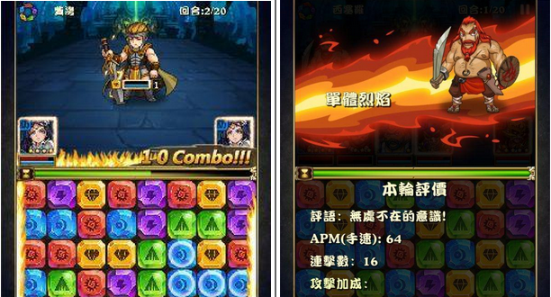 玩家可以利用消除相同类型的宝石来為自己的英雄增强怒气,怒气越多,对自己的战斗就越有利,懂得消除技巧的玩家才能在战斗上站在主动的位置。