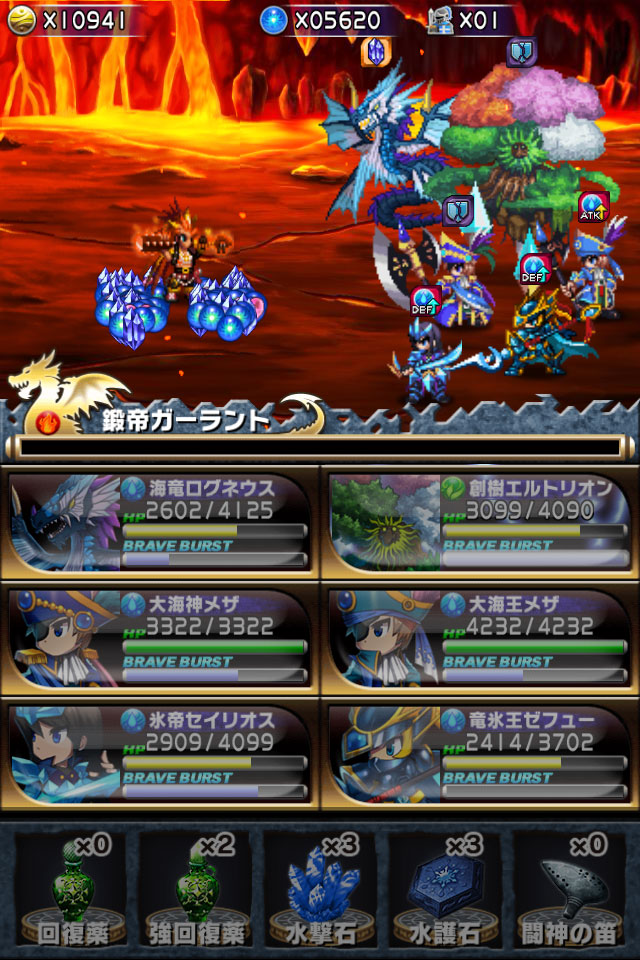 恢復药 / 强恢復药 / 属性攻击石 / 属性防御石 / 苏生药或武神药。