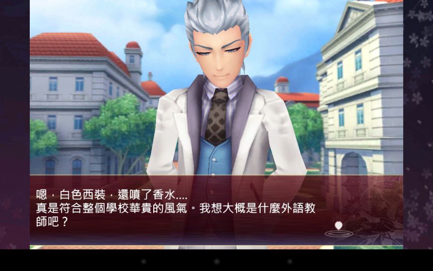 一开始我也跟主角一样,心想这位美少男的气质真的是太优了,该不会是校长的儿子之类的公子哥儿,结果他竟然是我们的班导师!!多希望现实世界也有这麼帅的老师!只是这位老师在一开始出现后,在我玩的剧情当中也只出现两、三幕吧!真希望可以常常遇到他。