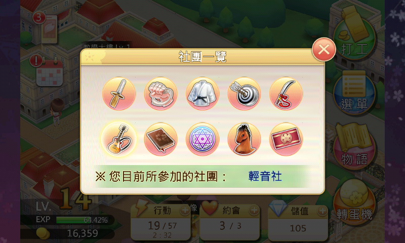 整体来看,早期由社团开始可以消耗较少的体力迅速把主学力提升满。但坑爹的是社团扣的学力也比读书高非常多,很容易变成主学力很高,其他皆为0的状态,一不小心没看清楚,目标学力就扣光光啰。所以下面针对要追的妹子,帮大家整理出可以参加的社团有哪些。