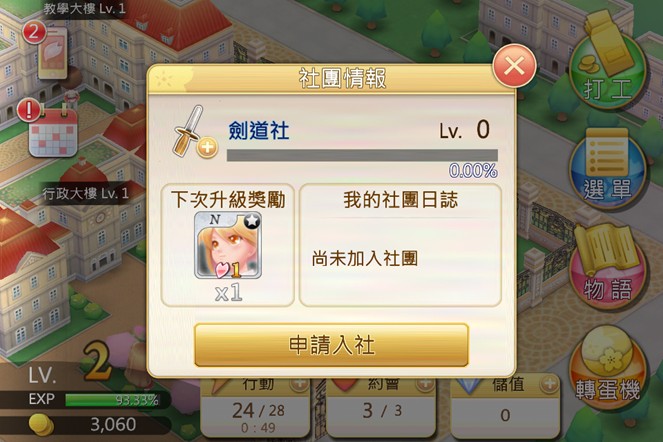 | LV0→LV1 | 剑道社 | 文学▲ | 杂学▼ | 【应援卡】剑道社员(N) |