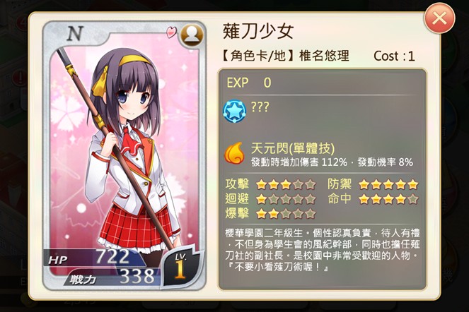 | 剑道社 | 文学▲ | 杂学▼ | 【应援卡】剑道社员III (SR) | |