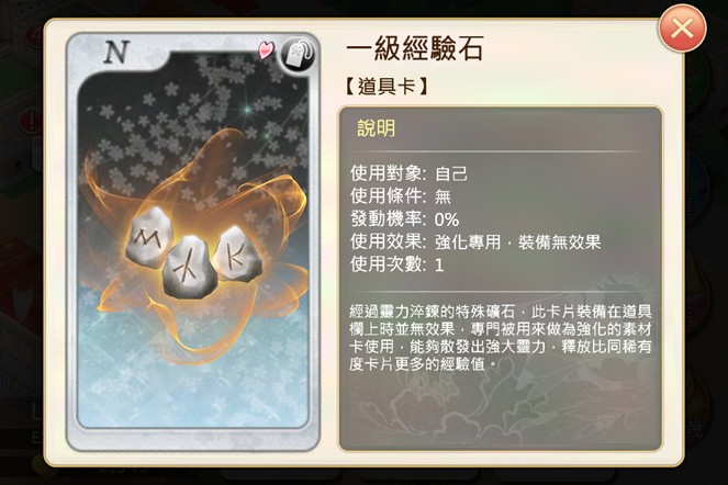 | 空手道社 | 数理▲ | 文学▼ | 【道具卡】一级经验石(N) | |