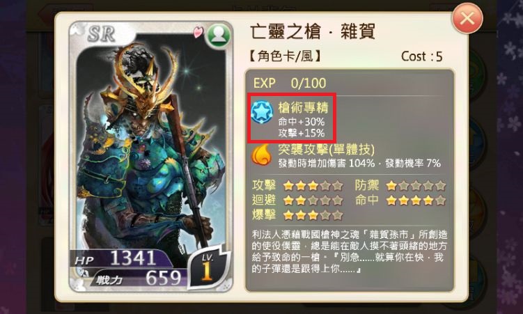 | SR | 亡灵之枪.杂贺 | 枪术专精 |