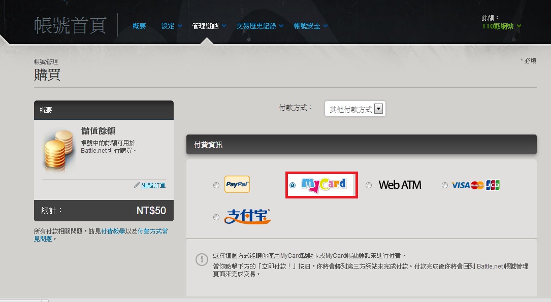 今天发现BattleNet可以用MyCard付费耶!(不知有没有回锅),如果觉得本篇有帮助,请给各支持>v<是我发文的动力,也欢迎交流讨论!