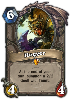 你的回合结束时,会帮你招换2/2的嘲讽小怪,中期可以对手不小的压力。因为是回合结束时招换,所以必定有一隻2/2 嘲讽怪