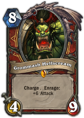 葛罗姆●地域吼 : 衝锋、暴怒加6点攻击,可叠加!(要搭配 旋风斩 或是 残忍的监工),再搭配血吼之斧的7伤,一回合可以製造非常非常可怕的爆发力。