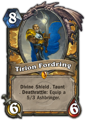 死亡之声:佛汀往生时会帮你装备 5伤3耐久的灰烬使者!这会让法师、萨满以外的职业很头痛,因为要完美解题必须要有沉默效果+一张杀牌来解。因为有武器的圣骑士在牌局中有质量上的飞跃!