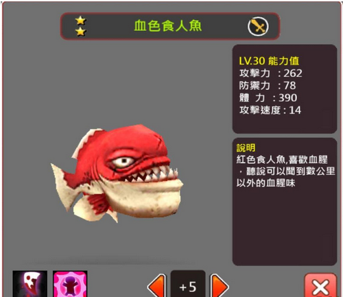 血色食人鱼是一个非常恐怖的控场型英雄,虽然他本身的体力、攻击跟防御都不算顶尖,但攻击速度相当的快,几乎可以保证在开场就可以先用技能使敌人失明。而且他还具备了全体降抗的技能,弥补了他本身攻击力较差的缺点。