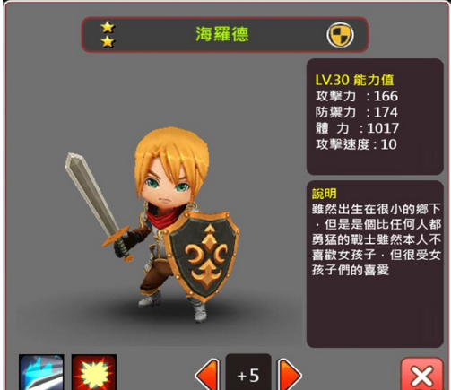 游戏中一开场就拿到的二星坦克英雄「海罗德」的优点是体力较高,同时伤害技能冷却时间短,并有集中火力的技能,但缺点是整体防御力并不算高、技能无控场或防御效果,且攻击速度较慢。