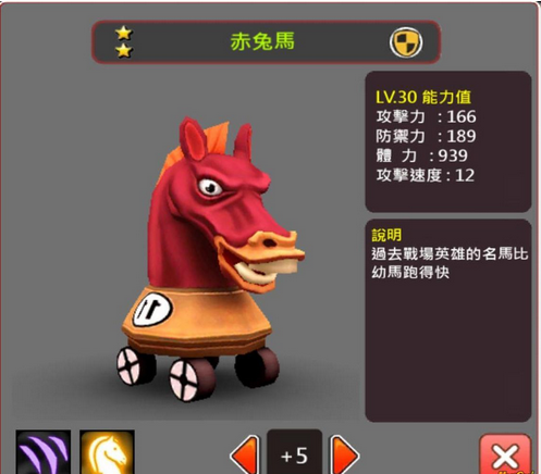赤兔马本身的优点在于本身防御力比起海罗德要高多了,而且攻击速度也比其他防御型英雄要来的快一点,不过缺点是本身的攻击技能冷却时间相当长,且攻击力也不算是顶尖级的。
