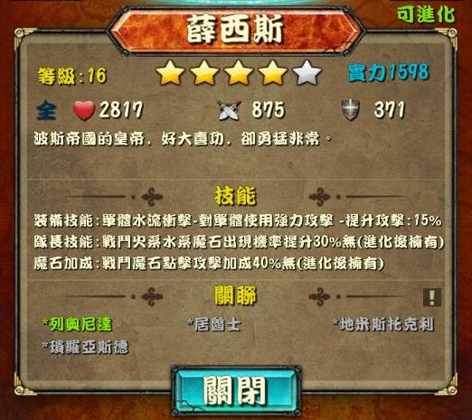 第一、二张是我现在队伍里正在使用的英雄,分别是:【四星英雄-薛西斯】