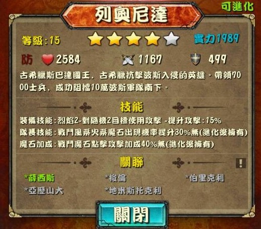 也就是说,在战斗施放技能的时候这两个英雄都能发出120%的攻击力,完全可以媲美5星英雄!(绿色字体显示的是已经激发的属性,灰色字体是还没激发的属性)