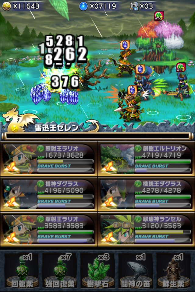 开场依然是攻击石、防御石或斗神笛常驻至「雷迅王ゼレン」击杀為止,补职尽量保持防御状态,同时在狂暴前不要轻易施放恢复技能,尽可能的使用补给品做血量调整。