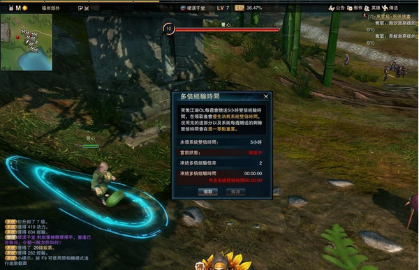 游戏中每个星期都有五小时的多倍经验时间可以利用,玩家可以视情况来领取。若是领取后,玩家觉得想要休息了或者是判断不值得在使用多倍经验时间时,就可以点冻结键将领取出来的多倍经验时间给冻结。由于每周一零点都会针对多倍经验时间进行重置,因此如果当周没有把多倍经验时间给用完,那就浪费了。不过也由于每周多倍经验时间只有五小时,玩家还是得谨慎点用,当碰到值得玩家开来冲等的场合时,再来使用吧!