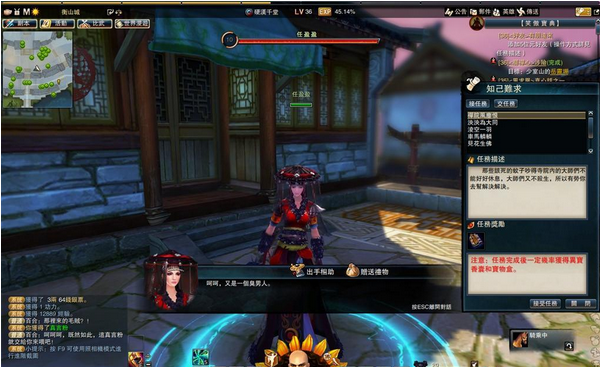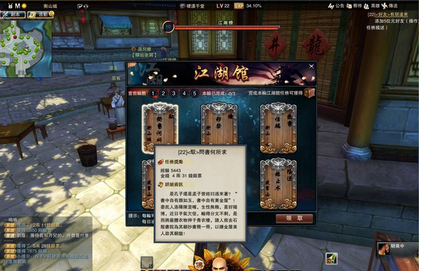 当玩家20 级后返回衡山城,就能接到茶馆任务,这个任务会引导玩家来打江湖榜。玩家每天可以在江湖榜接取五轮任务,每轮都可领取3 个任务,依照任务指示杀怪后,就可领取经验值跟金钱。完成每轮任务还有宝图碎片与英雄令等奖励可领取呢!