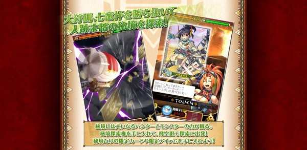 在这款游戏中,与掌机上将日式风味村落作为故事背景的做法不同,游戏背景是在卡鲁多比亚王国,在这个世界里,存在着猎人和怪物,世界各地都涌现出了神秘而又危险的【秘境】,玩家将扮演一名讨伐怪物的猎人,灵活使用各种卡片,探索秘境来与怪物进行狩猎。而作为名称的“大狩猎”,官方解释为可以让多名猎人一同参与狩猎,安趣小编认为这应该与卡牌游戏中的同伴模式相似,只不过在这个游戏中很可能一场战斗可以召唤多名同伴参与狩猎,这在宣传视频中也有疑似的演出。