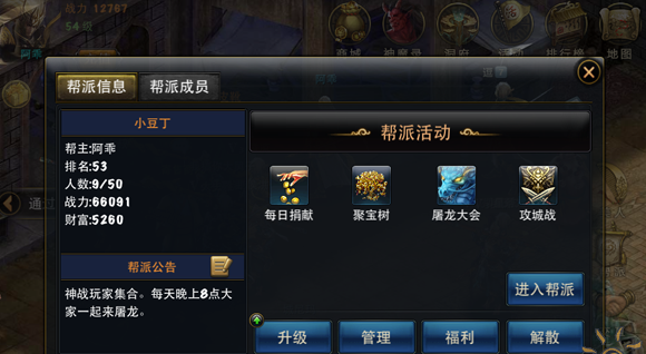 ◎屠龙大会:每天行会会长和副会长可以召唤一条龙让大家击杀。击杀成功每位会员可以获得大量经验奖励,还有强化石分配给大家。行会管理者记得给大家预定好召唤龙的时间,毕竟人多力量大,击杀时间的长短决定了参加其他活动的资格。