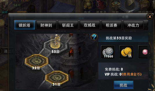 挑战技巧-每日第一次的时候可以尝试挑战下下一楼层,如果在3的倍数建议在战力不够的情况下不停的释放必杀技能(免费用完,每次1金币);