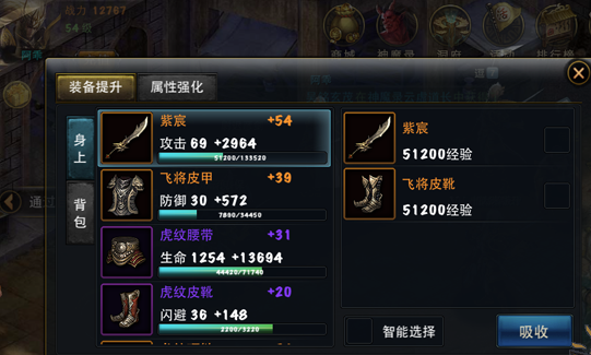 ②更换高属性装备(不一定是高级装备)、强化装备等级;