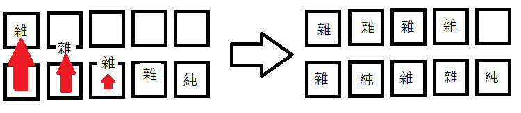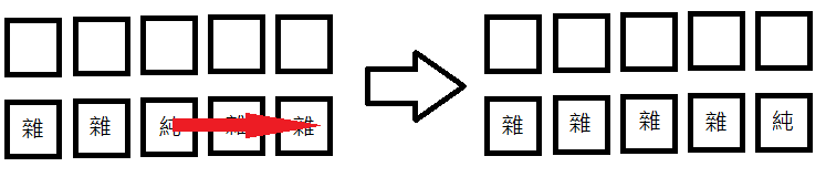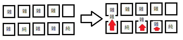 2.将不要的杂色牌 如图依序往上丢