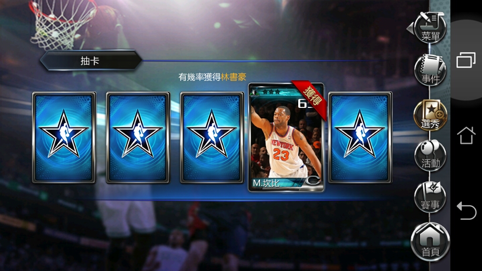而个人觉得这款游戏最棒的部分在于球员选秀,也就是卡牌游戏裡的抽牌系统,这款游戏的卡牌做的程度本人觉得实在”高水準”。不只因为卡片本身细緻,现实中的球员组合,也会匯入游戏裡的”连携” ,增加了现实感。例如大家众所皆知的林书豪,与哈登就可凑成哈林组合,这对NBA迷无疑更是一大吸引。卡片本身的内容也是细緻到一个不可思议,以下这位被我抽到的球员,相信大家对他应该陌生,但是如果查查外国奇异刺青,这位老兄可在我们的榜单裡。