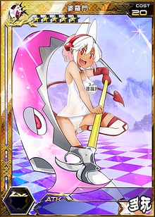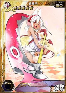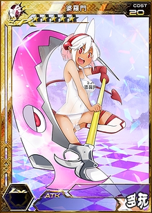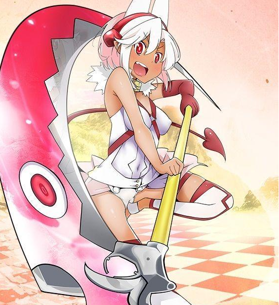 来自柔然部族的魁魅魍魉型战术仙女,战斗力强大,会藉由敌方的攻击将自己的衣服破裂后展示出来的学校泳装,使自己的人气大量上升。 |