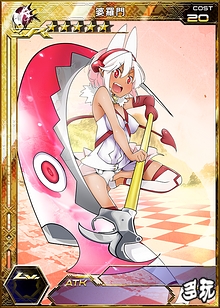 | 背景资料 | 来自柔然部族的魁魅魍魉型战术仙女。战斗力强大,会藉由敌方的攻击将自己的衣服破裂后展示出来的学校泳装,使自己的人气大量上升。 | |||