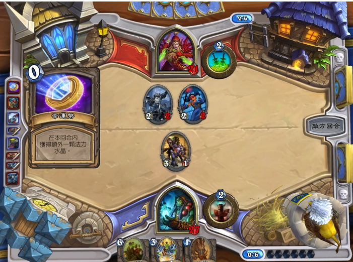 除了卡牌可以用之外,每个英雄只需2点水晶就可以施放其英雄能力,而且每回合都可以使用,所以玩家要记得除了施放卡牌之外,也要记得评估适不适合使用英雄能力了。