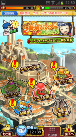 6.カ儿ドピア城,点下去会有,「女王样メダ儿交换所」,用 (女王样メダ儿) 交换道具的地方。「ギ儿ド」公会,点选后会进入公会页面。「大狩猎」如其名,点选后会进入大狩猎页面。「秘境探索」同上,会进入秘境探索页面,探索一次需要三张。『秘境探索チケット』,这项道具似乎要靠大狩猎或七龙杯来拿,秘境探索能拿到素材道具及限定卡片。