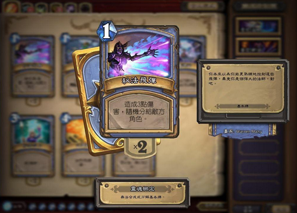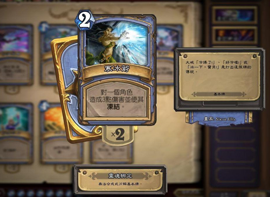 而由于法师本身缺乏防御与自愈能力,因此活用「寒冰箭」的「冻结」效果来控场,或是利用「变形术」直接弱化敌人强大的手下并进行秒杀的手段就非常重要。另外我们也可以搭配「镜像」这张卡片来强化阻挡敌方攻击的防御能力。