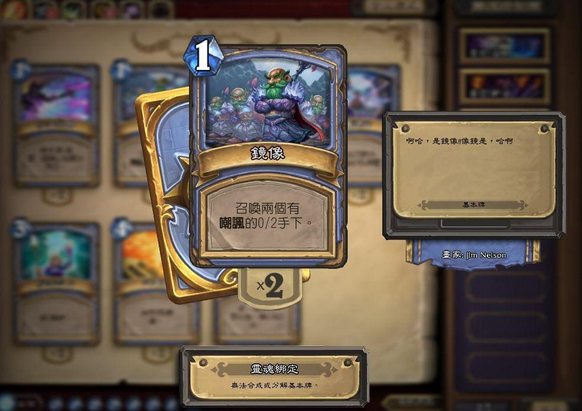 在中立卡牌的搭配方面,建议玩家尽可能选择具备「嘲讽」能力的手下卡牌,来避免敌方的手下直接攻击自己,像是「闪金镶步卒」、「霜狼蛮兵」与「铁鬃灰熊」… 等,都是初期不错的选择。另外我们也可以搭配几个出场即可透过战吼发动补血能力的手下,来补足我们自愈能力的不足,像是「巫毒巫医」、「暗鳞医者」等卡牌。