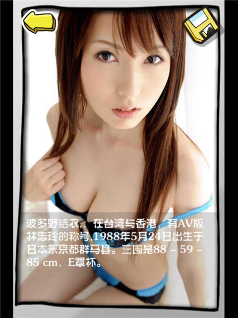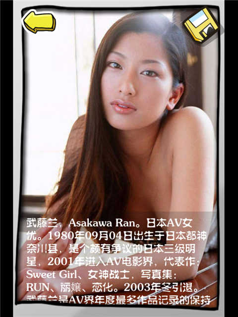 《疯狂鉴黄师》听到这个名字我想玩家们就有点懂了,由其是绅士党与宅男党们呵呵就开始撸起了,和你想像中的没有错,毕竟对于我们这些宅男们而言,岛国的各位女优们可以我们的老师啊,也算是各位的启蒙老师,对于启蒙老师我们怎么可以忘记她的玉名了,如果有你不认识的,那么就来这里吧!