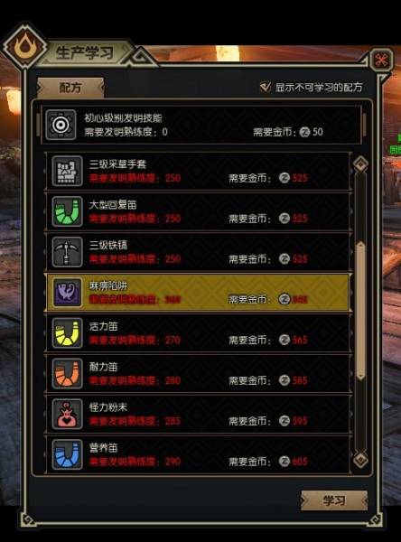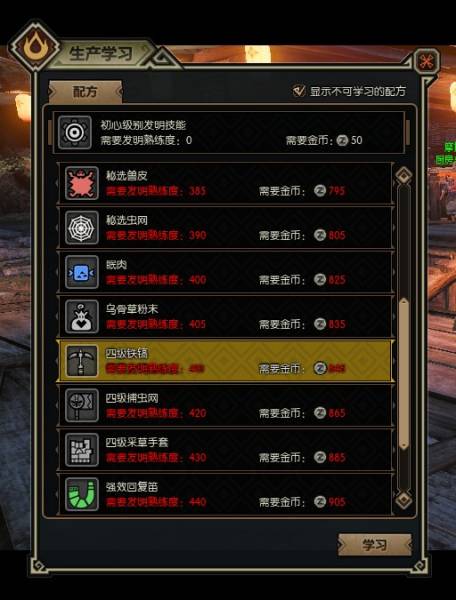 怪物猎人OL生产系统说明