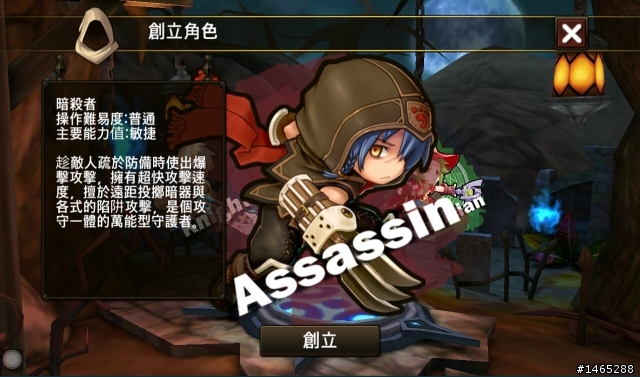 职业之二暗杀者,速度跟爆击是卖点,近远都可以的攻击手段也很有魅力,招式都很好玩,尤其后面学到毒雾之后就可以脱怪脱爽爽。