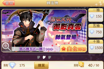 ▲白金转蛋,闇夜死神-御影真云,帅气登场