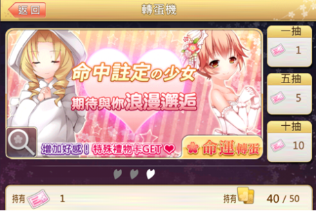 ▲命运转蛋,大量增加好感的道具,等待抽奖