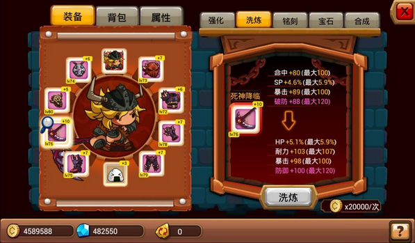 由于装备的限制,所以我们只能选择四种主要属性,按重要性来看,我们选择了耐力、敏捷以及力量。剩下的一种,只能在速度以及命中上做取舍。不过通常命中对于技能发动率的影响比较大,速度的部份可以从敏捷以及后面的炼魂做弥补,所以我们将它跟暴击当做附加属性来做选择性的提升。