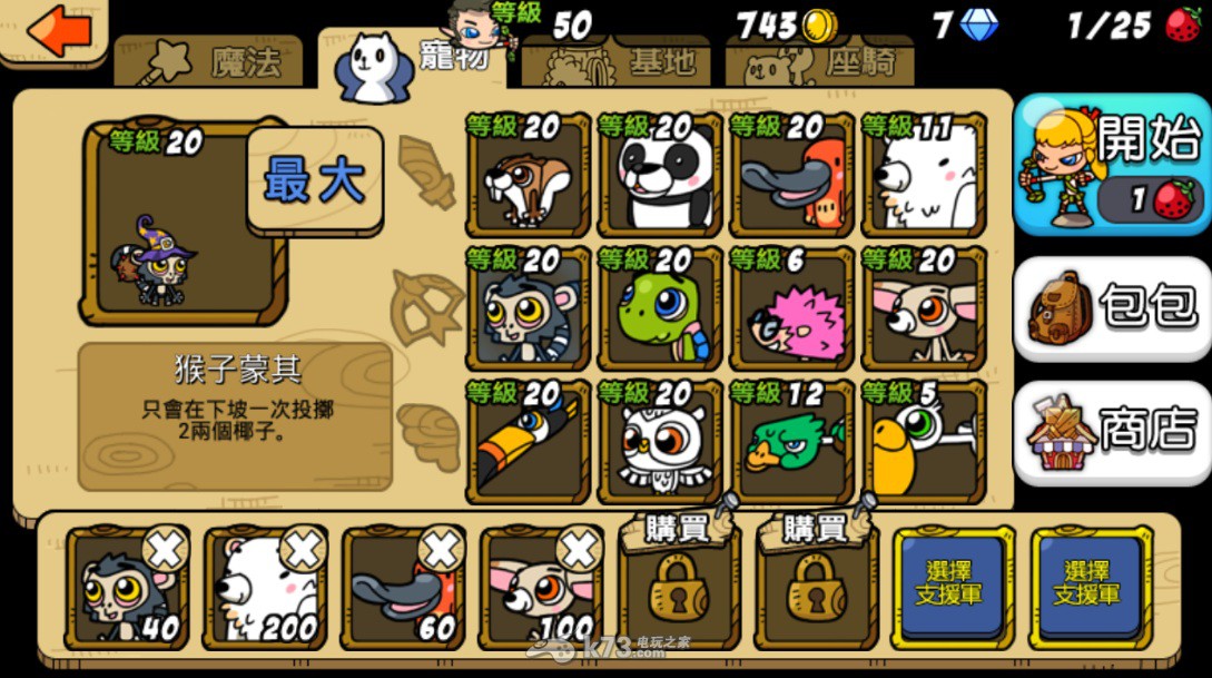 4.把花栗鼠、猴子、暴怒鸟衝满;乌龟、猫头鹰加到10;鸭嘴兽点满(5400的血初期是很强的盾)