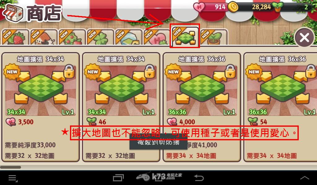 如果纯净度不够就没办法建盖工厂,必须到商店找幸运草的分类,摆设装饰品才能增加纯净度。如果纯净度不够了是没办法补足的,唯一的方法就是不断的盖装饰品。