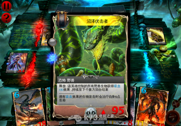 打法:一次秒不死对面,几乎等于原地复活的状态。如果它先上女皇玛莎卡,那恭喜中奖,比较容易打了。如果是狼魂,牛头人*N,布那瑞先驱*N,九头蛇*N加巨龙 的顺序,嗯,可能会比较艰难。你知道布那瑞是多么的讨厌,战役大家可以试试效果。法术有大量的守护者姿势,闪避,杀戮狂暴,偶有突袭。地形卡是真实献祭和 生命赠礼,没一个省事的。搞不好你还的挨几把镰刀。打出节奏比较简单啦,就是配合法术卡,召唤攻击,急速,一次搞定