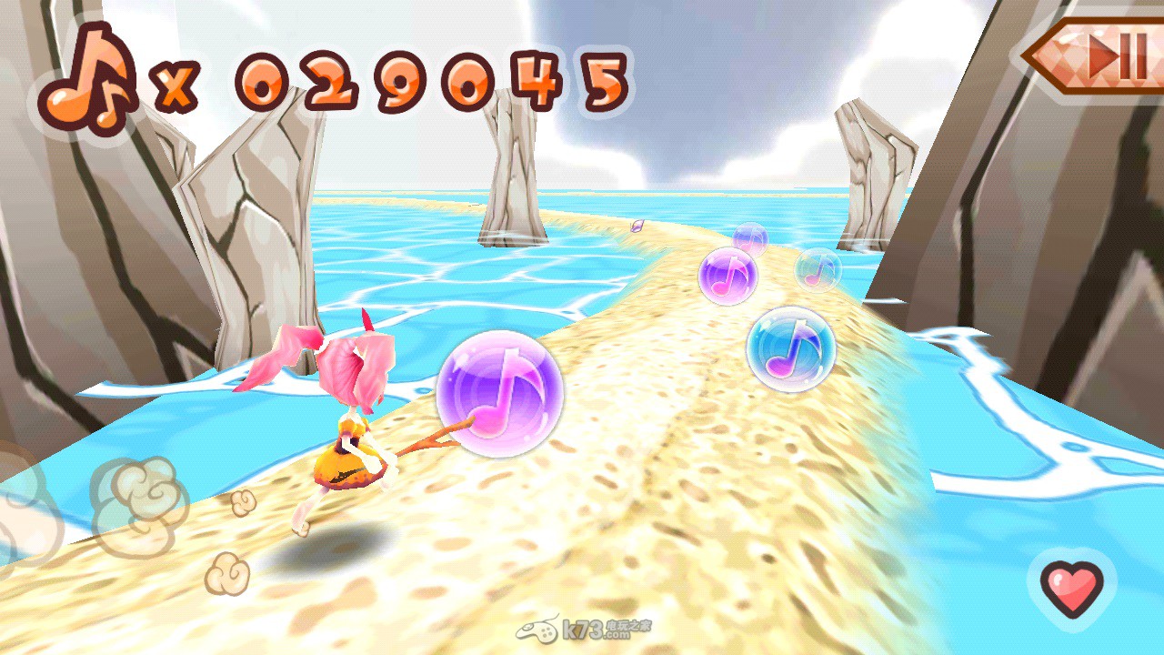 游戏方式相当简单,奔跑的过程中,玩家必须跟着背景音乐节奏左右移动更换跑道来获得音符,而当遇到怪 物袭击的时候,就必须要利用点击的方式来将其踢除。