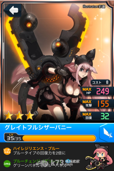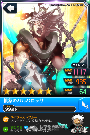 则可以两支色转先开>爆发(至少28片蓝版),再开愤怒之青>全版水版(33片蓝版),然后两支色转技能又跳起来,再开一次两支色转的爆发,然后再SUPER CHAIN洗蓝版............(喂!都被你打死了还洗!),而补血30%的角色是整队的救命角,15片就可以补30%的血量,配合SUPER CHAIN可以发动两次,对于回覆低落的蓝队是很重要的存在,按照我这种组队模式,找个强力好友,我想辗过试练洞窟应该不是问题,庆幸的是,除了队长以外,队员几乎(80%)都可以在关卡中跟有情抽无痛入手(除了刚刚说过的,有些在第一第二第叁巨神的尾王那边请刷出来)